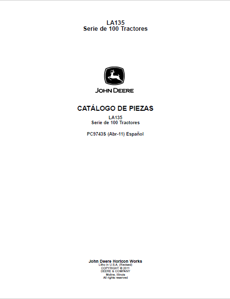 [2011]Attention! We present this Electronic Parts Manual with important and helpful information and different illustrations, especially for John Deere LA135 100 Series Tractors. Factory file contains technical data, settings, transmission, safety rules, operation instructions, parts of the list, troubleshooting, a lot of screenshots, different diagrams, and schemes.