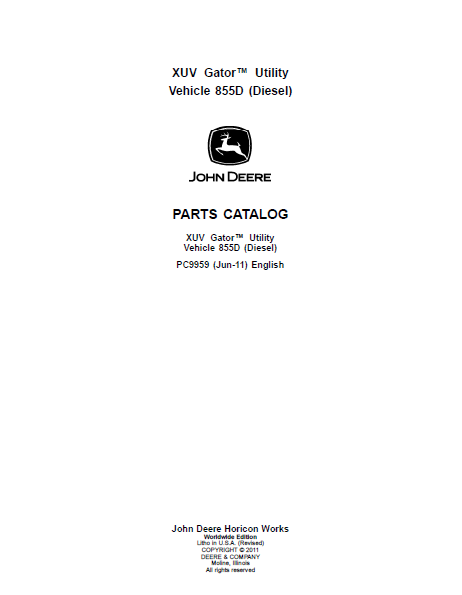 John Deere XUV Gator Utility Vehicle 855D Diesel Parts Catalog PDF