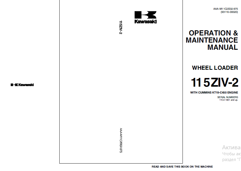 Kawasaki Wheel Loader 115ZIV-2 Operation and Maintenance Manual PDF