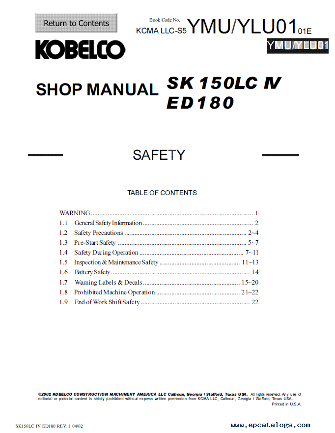 [04/2002]Factory information for thу SK150 (LC) IV and ED180 (LC) model excavator is contents into two files, which complement each other and include detailed and high-quality diagrams, charts, and pictures that help to carry out all the maintenance and repair procedures.