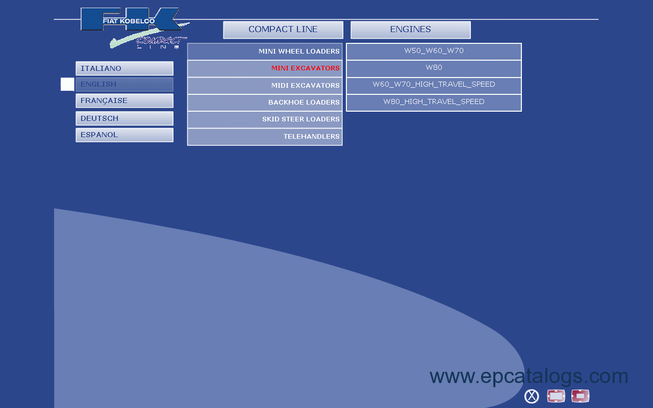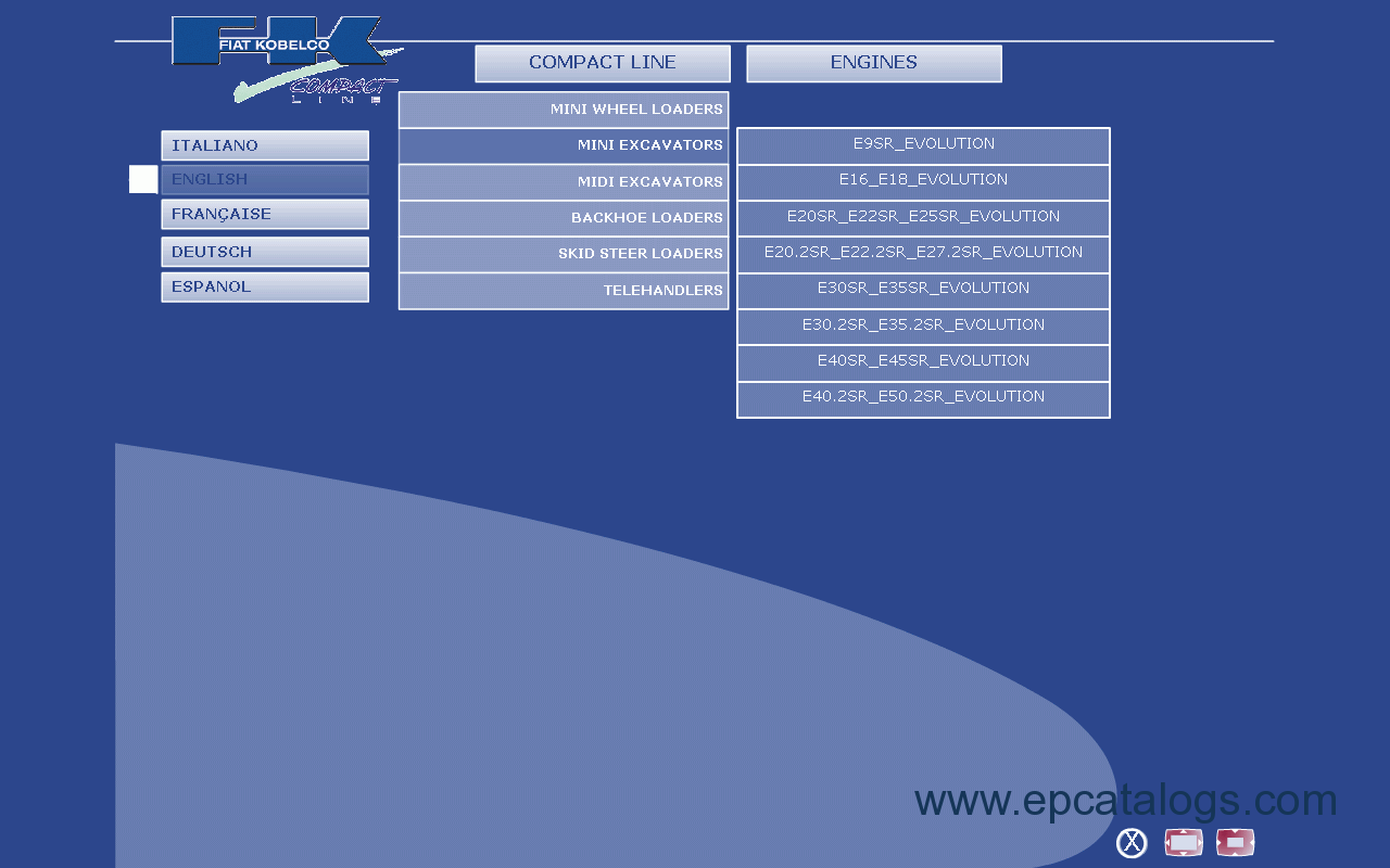 Fiat Kobelco program interface is very simple and convenient, it allows you to search for parts by model, serial number, by name, etc. In the catalog of Fiat Kobelco is a list of details of applicability, the program provides service bulletins.