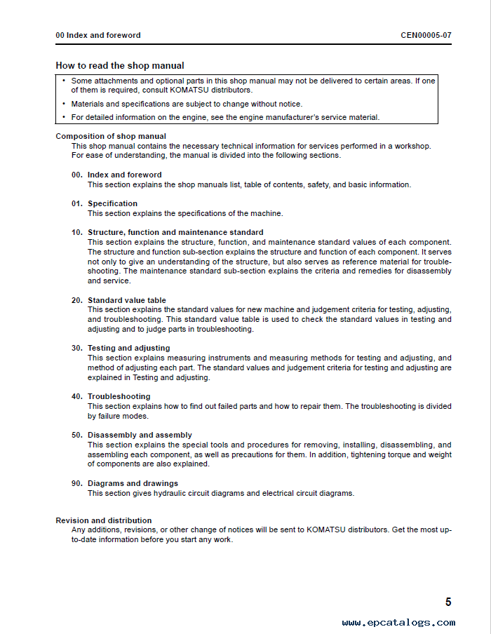 Regardless of the problem that occurs, do any procedures should be started after reading the "safety measures" section. It will help you to avoid any breakdowns, injuries, and other problems. An online text comes in PDF format with 1752 pages for reading. For work with the material, you need to install the application Adobe PDF Reader. Komatsu's information was written in English.