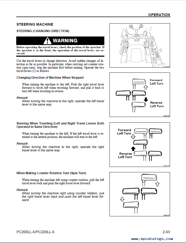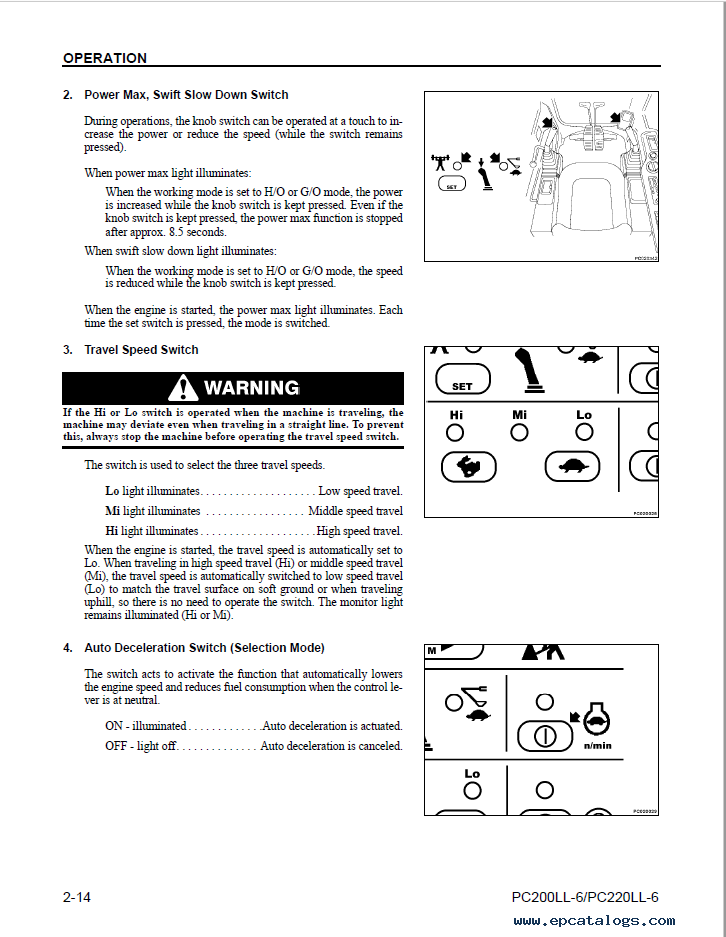 Screenshots for Komatsu PC200LL-6, PC220LL-6 Logging Excavator Operation and Maintenance Manual PDF: