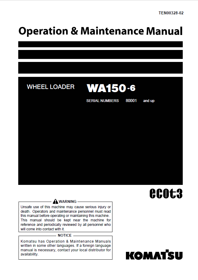 Related products for Komatsu WA150-6 Wheel Loader Operation and Maintenance Manual PDF: