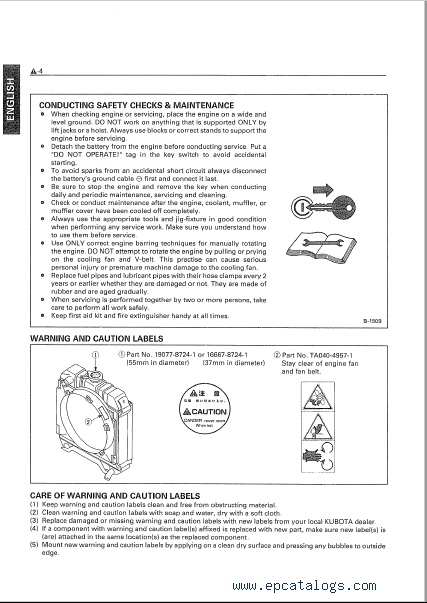 []This PDF Operators Manual was written specially for correct use and good maintenance, repair procedures and troubleshhoting of the Kubota Diesel Engine D1403,D1703-BG, V1903-BG, F2803-BG, V2203-BG. The factory file includes general service information, operation section, and maintenance recommendations, specifications, settings, technical data, safety rules, many schemes, diagrams, and illustrations others.