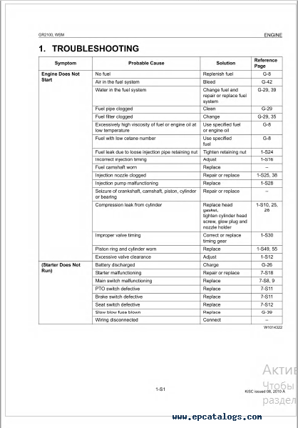 ![]() Kubota Engines Repair![]() Repair Manual Engine Kubota dealer documentation is a directory, which contains guidance on repair and maintenance, provides a complete description of the diagnosis, including moments of delays, the process of assembly and disassembly of the engine and other units and units, all electrical devices and control units, the necessary special tool as well as other information. The electronic Kubota Engines Repair Manual contains technical information on these engine models, Kubota - 03-M-E2B, 03-M-E3B SERIES, 03-M-DI-E3B SERIES, 03-M-E3BG SERIES, V3300-E2B, V3300- T-E2B, V3-E3B SERIES, V3-E3CB SERIES, V3-E3BG SERIES, 03-M-E3B Series, 03-M-DI-E3B Series, 03-M-E3BG Series.