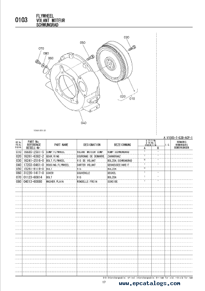 []This PDF Illustrated Parts List contains technical information about spare parts, details, and accessories for the Kubota V1505-T-E2B-ACP-1 Diesel Engine Model. The electronic catalog includes parts instructions, settings, operation, troubleshooting, a list of parts, illustrations, diagrams and schemes.
