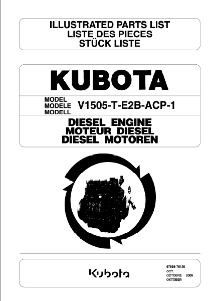 Kubota V1505-T-E2B-ACP-1 Diesel Engine Illustrated Parts List PDF