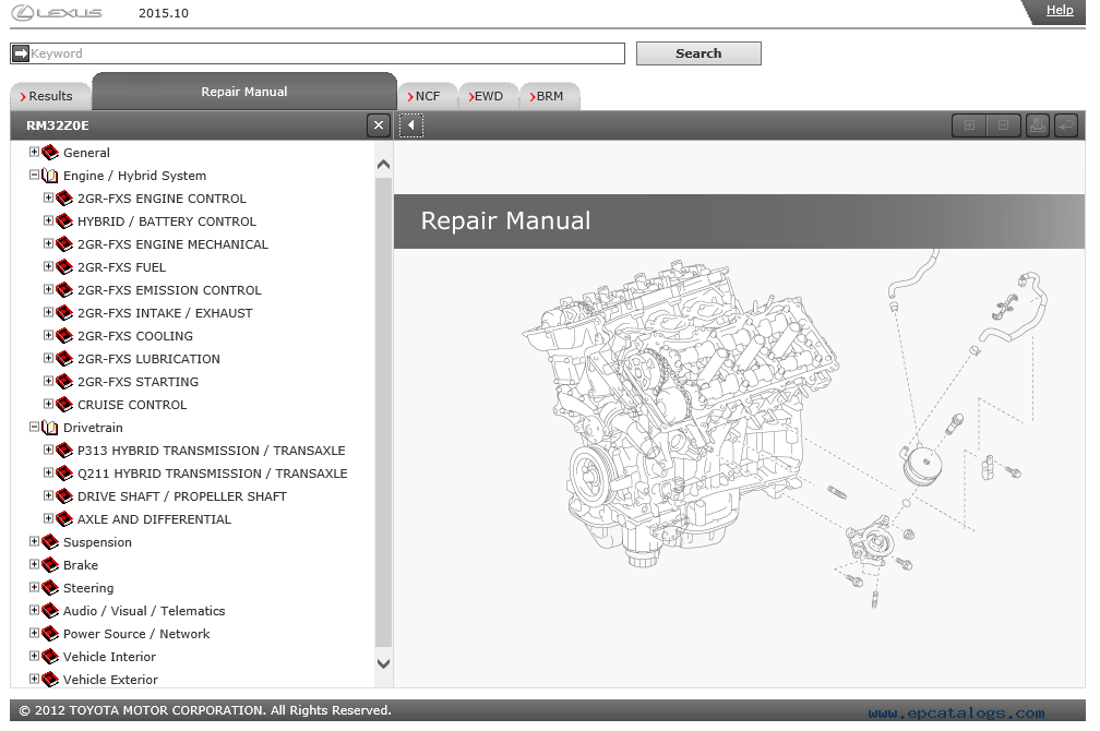 ![]() Lexus RX450h (GYL10, GYL15) Repair Manual 2012![]() Program includes repair information, body work instructions, wiring diagrams for Lexus cars RX450h series, GYL10, GYL15.