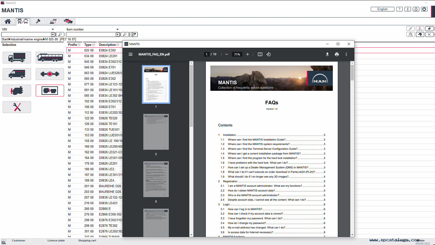 Screenshots for MAN MANTIS 7.1 [10.2025] Parts Catalog VMware: