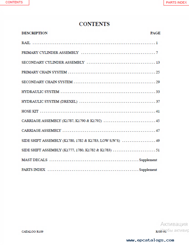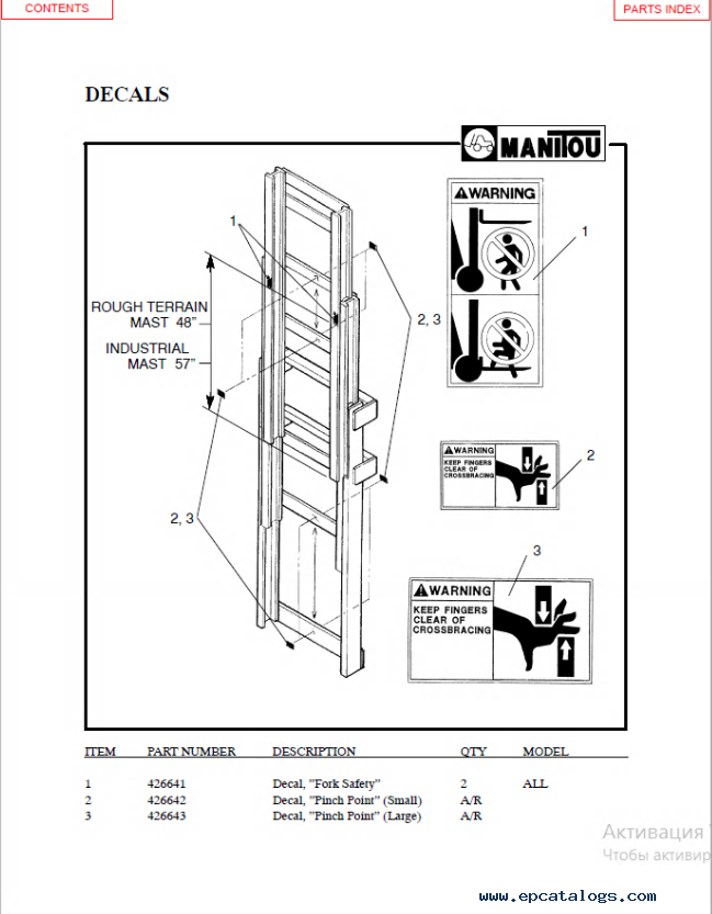 ![]() Manitou Forklift CD47824 Parts Catalog PDF![]() The electronic guide includes safety rules, a list of parts, service parts, operation, settings, troubleshooting, settings, accessories, transmission, hydraulics.