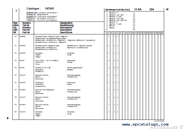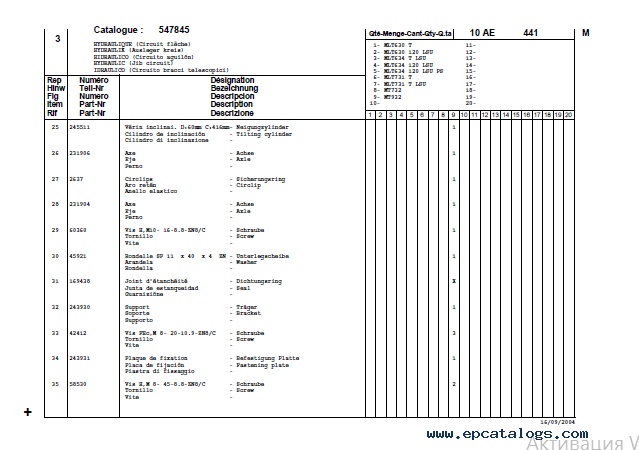Screenshots for Manitou Forklift MLT 630/634/731/732/932 Parts Catalog PDF: