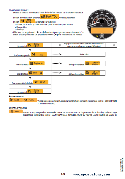The electronic guide includes material on detailed descriptions, operation, maintenance, safety instructions, accessories, technical data, settings, and a variety of illustrations, diagrams for your Manitou machine.