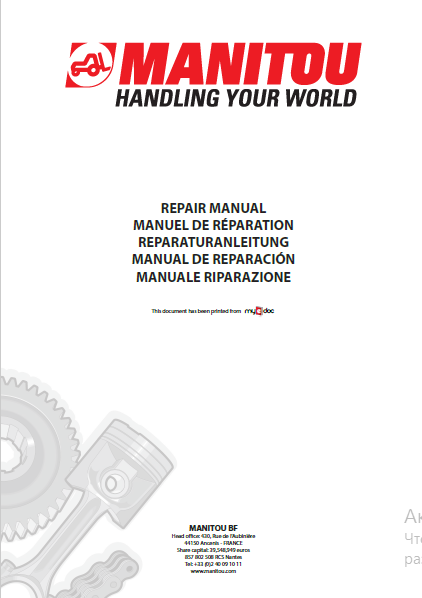 ![]() Manitou Forklift CD547014 Repair Manual PDF![]() Electronic guide contains sections about technical data, transmission, repair instructions, safety rules, maintenance procedures, hydraulics, electricity.