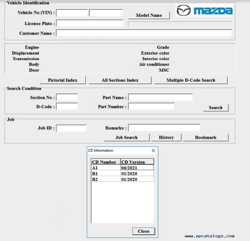Program Mazda EPC contains the full information on cars and minibusses with the left arrangement of a rudder, since 1985. It is delivered on three CDs. In the program, there is a search on VIN, on the model of the automobile, under the original number of a detail, and there is a function of conducting Job-sheets.