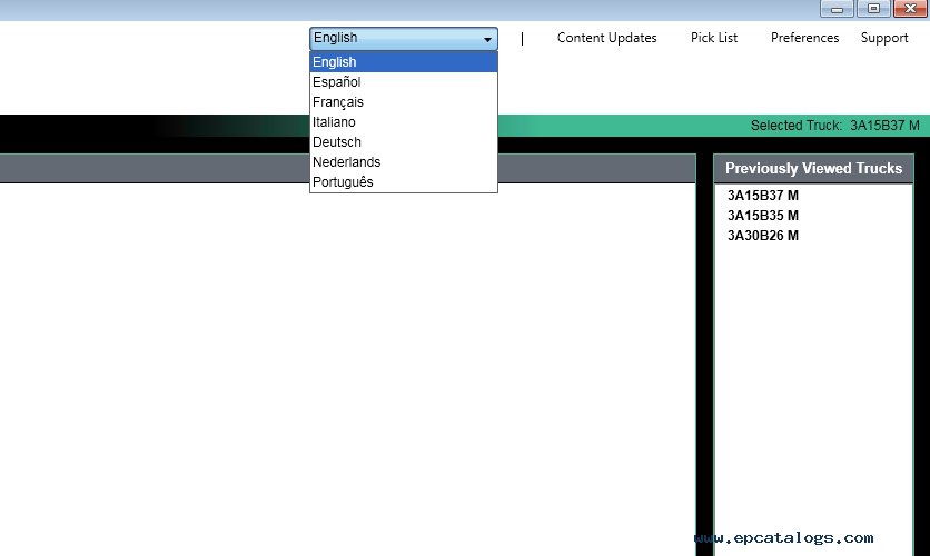 This parts catalog has a very simple and convenient interface that supports English, Spanish, French, Italian, German, Dutch, and Portuguese.