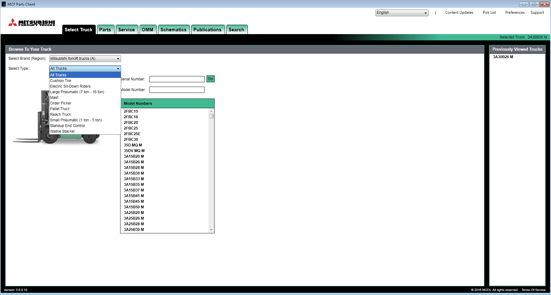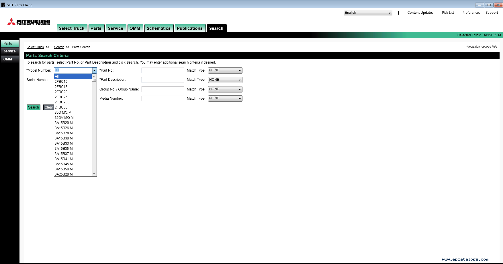 Screenshots for Mitsubishi Lift Trucks 2025 (MCFA) USA Parts Catalog and Service Manuals:
