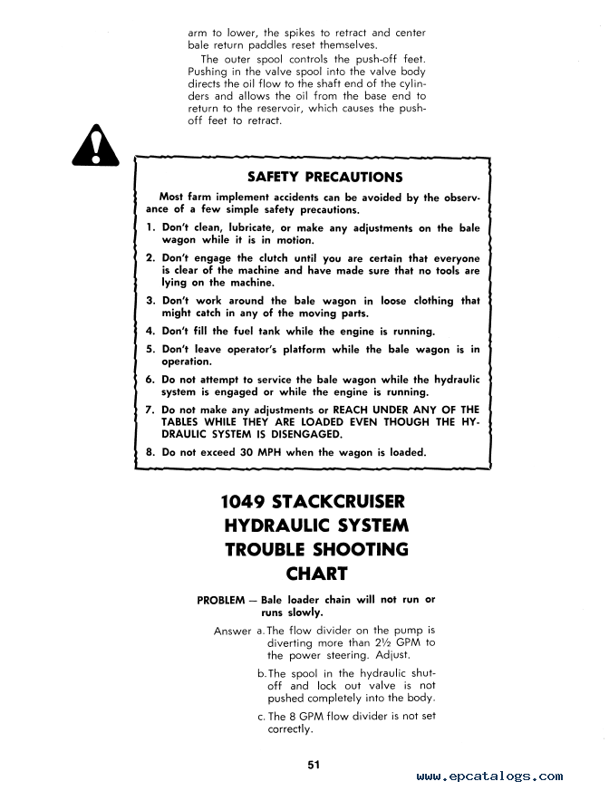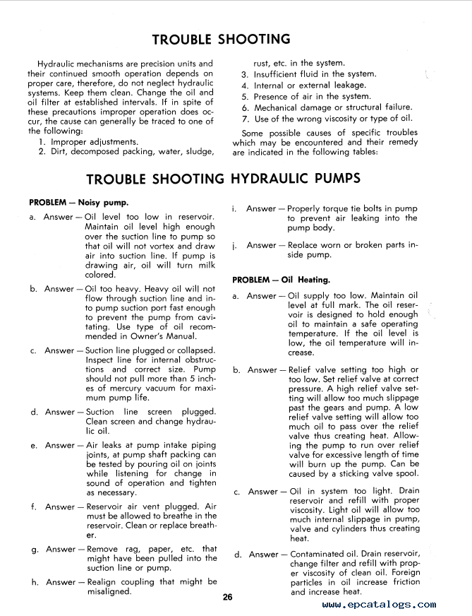 Hydraulic Flow and Troubleshooting - Models 1000, 1005, 1010, 1024, 1030, 1035, 1044, 1046, 1047, 1048