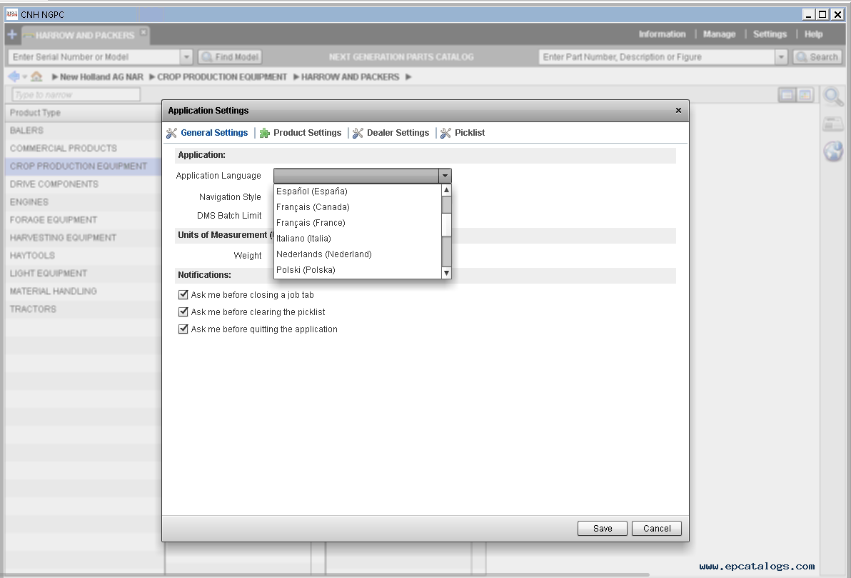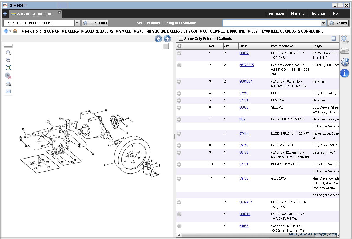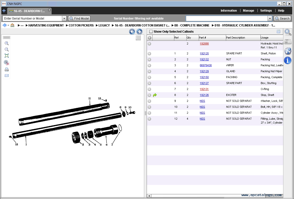 Screenshots for New Holland EPC AG North America region 11/2018 Parts Lookup Offline: