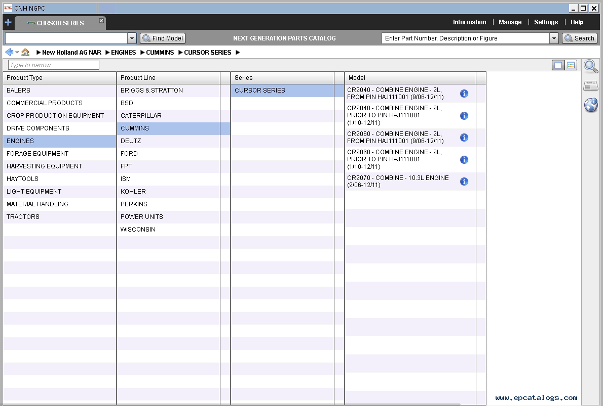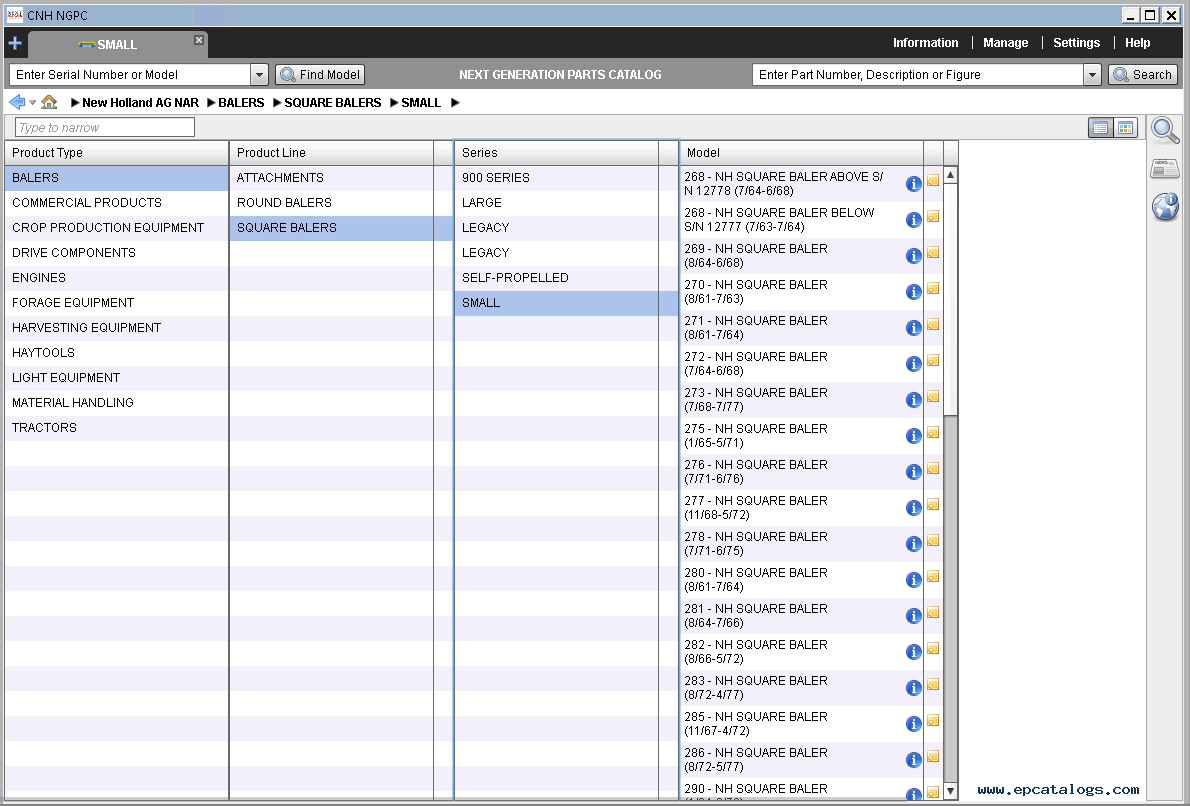 New Holland parts catalog AG NAR for the North America region (USA, Canada, Mexico) is an electronic parts catalog of spare parts for all agricultural equipment this brand. With the help of an electronic catalog, the customer, serviceman or owner is able to find clear information on diagnosing existing or potential problems, to carry out maintenance and repair problem areas and agricultural equipment malfunctions.