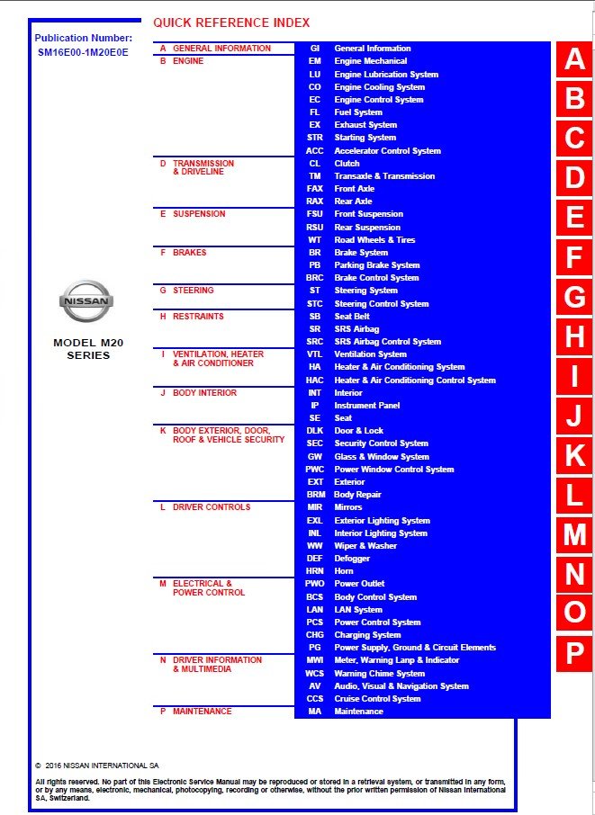 Nissan NV200 M20 Model Series 2016 Electronic Service Manual