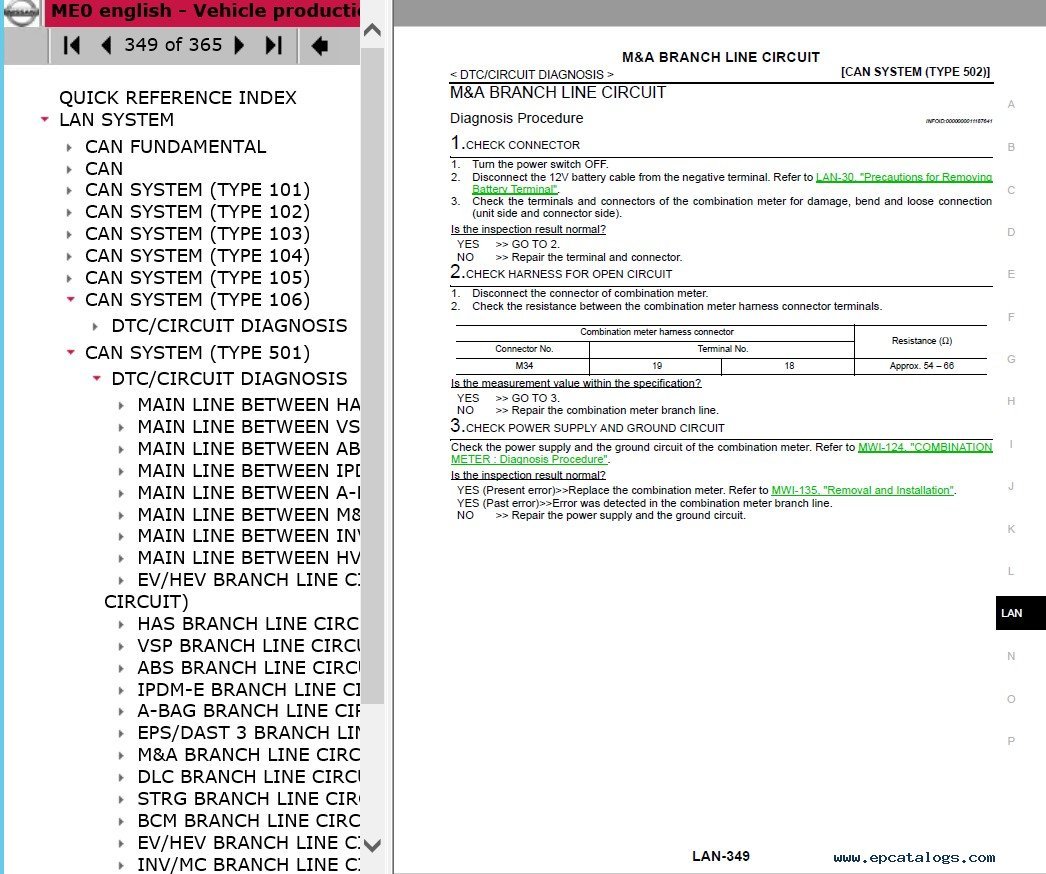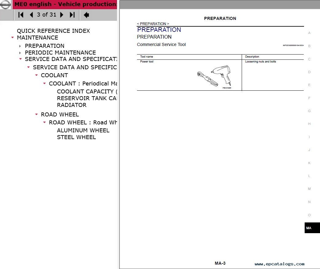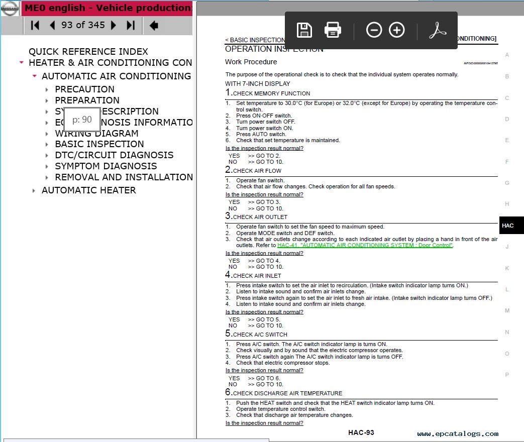 Screenshots for Nissan NV200 Model ME0 Series 2016 Electronic Service Manual: