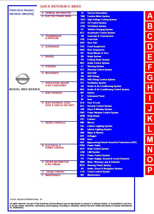 Nissan NV200 Model ME0 Series 2016 Electronic Service Manual
