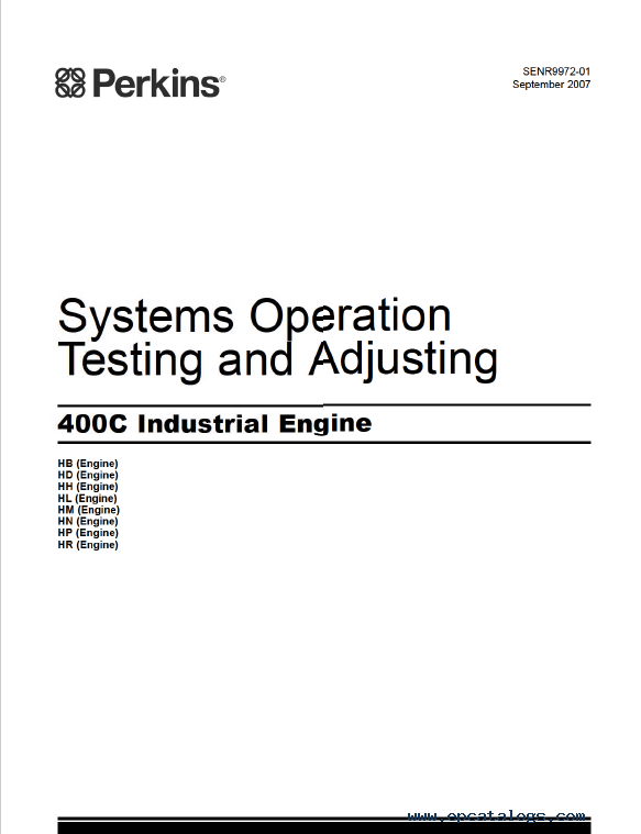 - Perkins 400C Industrial Engine Systems Operation Testing and Adjusting (SENR9972-01).