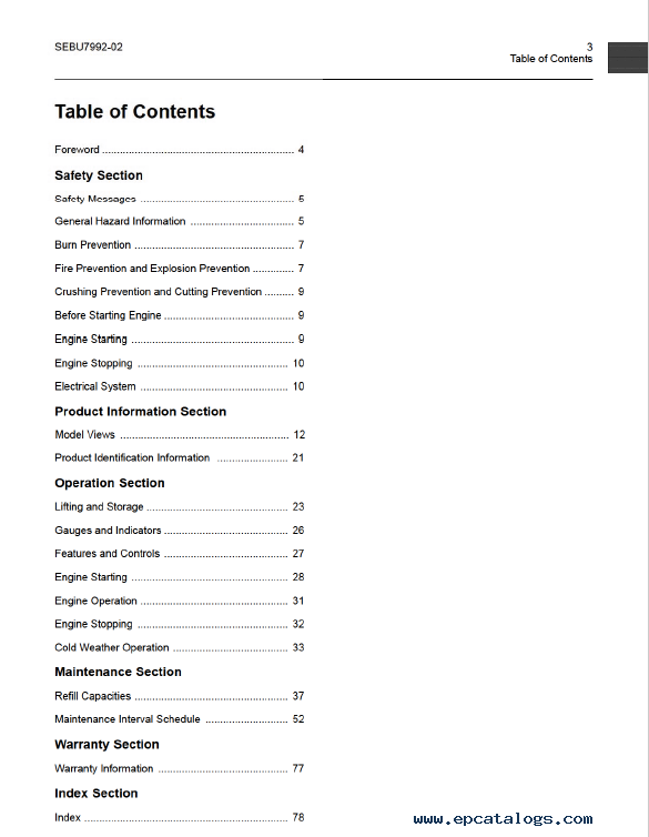 Contents (SEBU7992-02):