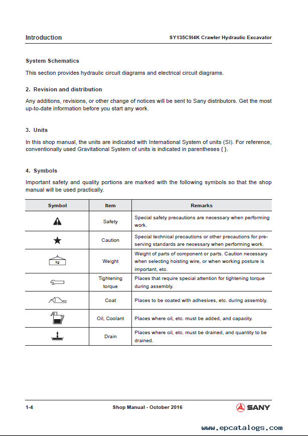 [2016]To your attention, we present you this Shop manual with important information and helpful diagrams and schemes for Sany Crawler Hydraulic Excavator SY135C9I4K model. This Electronic guide includes service instructions, repair material, troubleshooting, settings, and many more sections with information for this model.