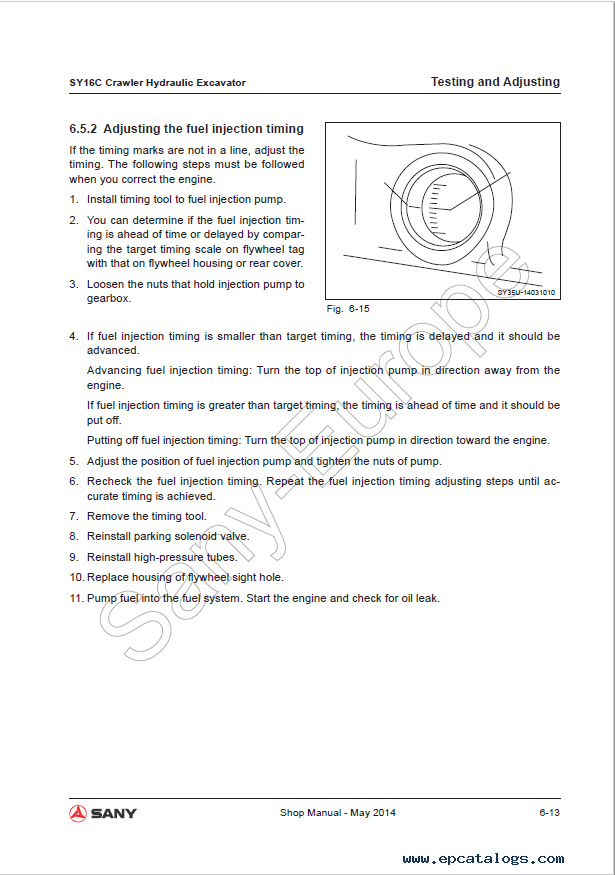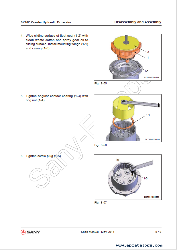[2014]This Shop manual has been prepared to provide information about repair procedures, service instructions, troubleshooting, and safety rules, especially for the Sany Crawler Hydraulic Excavator SY16C model.