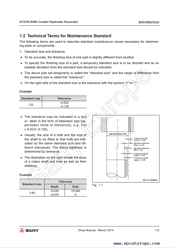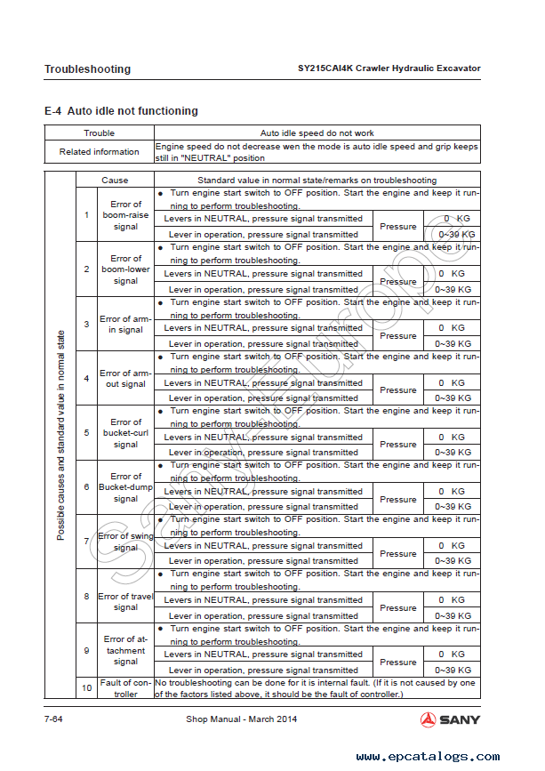 [2014]This PDF Shop Manual covers information about care and safety information, operation recommendations, specifications, troubleshooting, special procedures, and, of course, useful illustrations, different diagrams, and important schemes for Sany Crawler Hydraulic Excavator SY215CA14K Model.