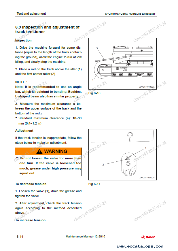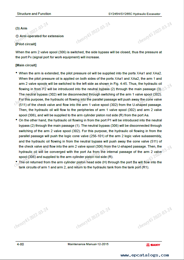 [2015]The Maintenance Manual is designed for correct use, technical maintenance, repair procedures, troubleshooting, and operation of Sany Crawler Hydraulic Excavator SY245H, SY265C models.