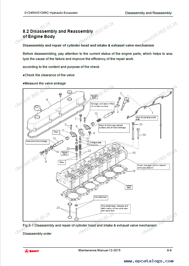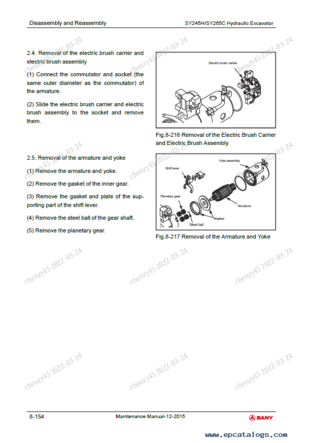Screenshots for Sany Crawler Hydraulic Excavator SY245H, SY265C Maintenance Manual:
