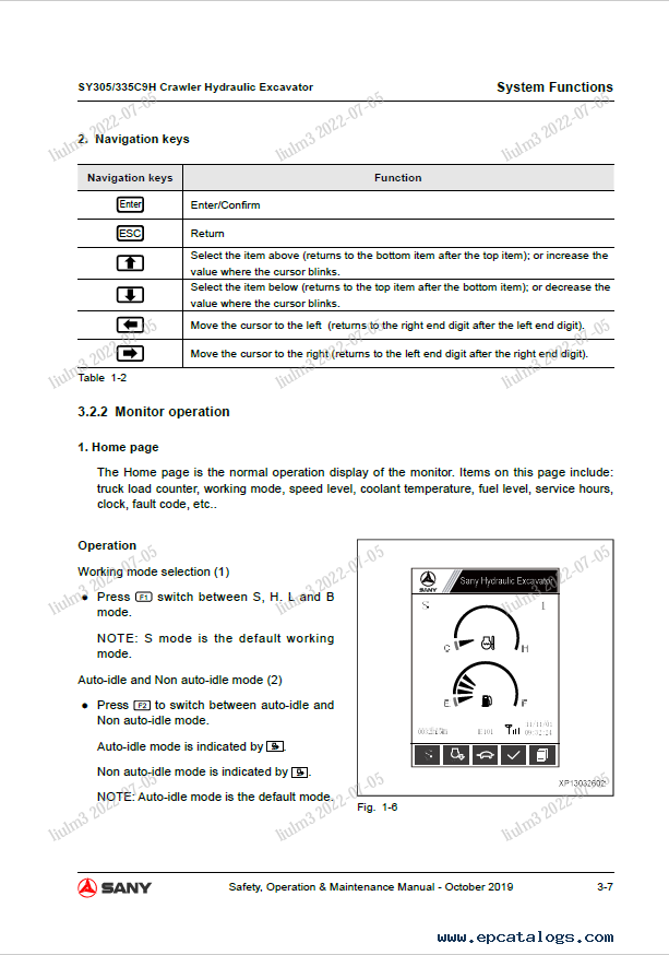 Screenshots for Sany Crawler Hydraulic Excavator SY305/335C9H Safety, Operation and Maintenance Manual: