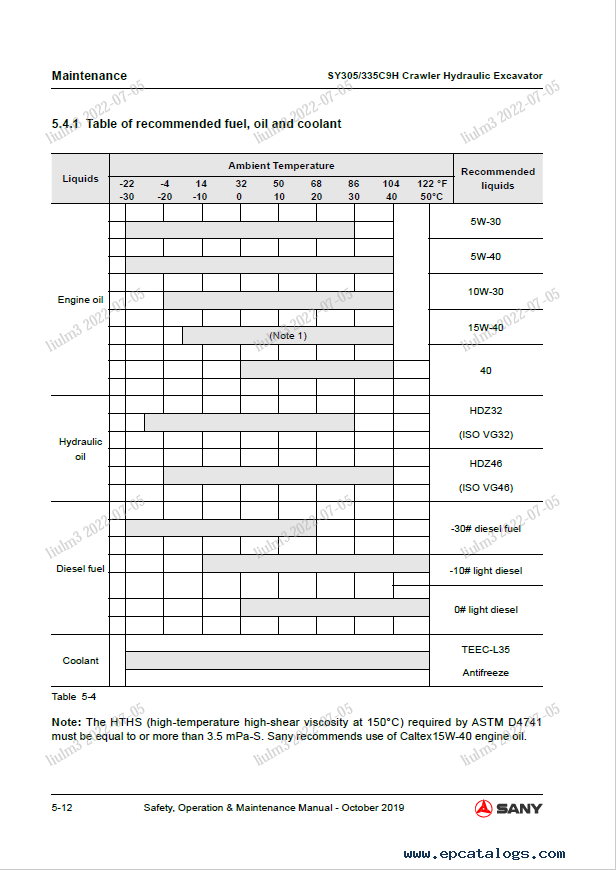 Sany Hydraulic Excavator SY365H, SY365BH, SY375H-10 Operation and Maintenance Manual