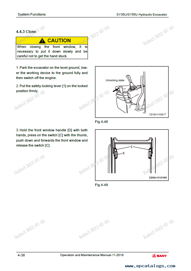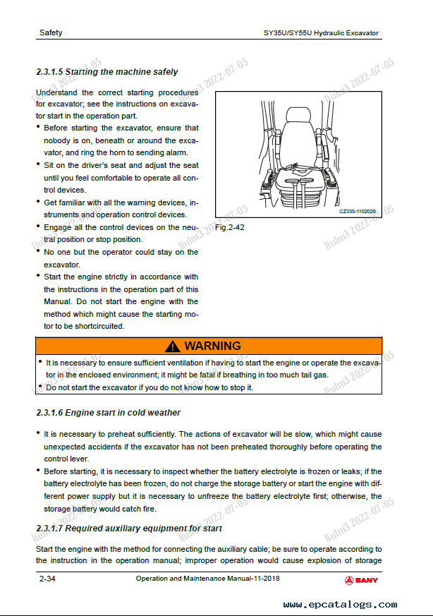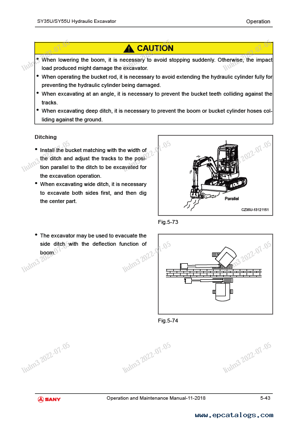 Sany Crawler Hydraulic Excavator SY35U, SY55U Operation and Maintenance Manual PDF