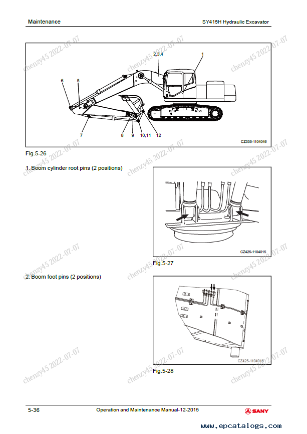 Related products for Sany Crawler Hydraulic Excavator SY415H Operation and Maintenance Manual PDF: