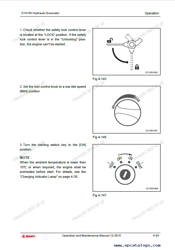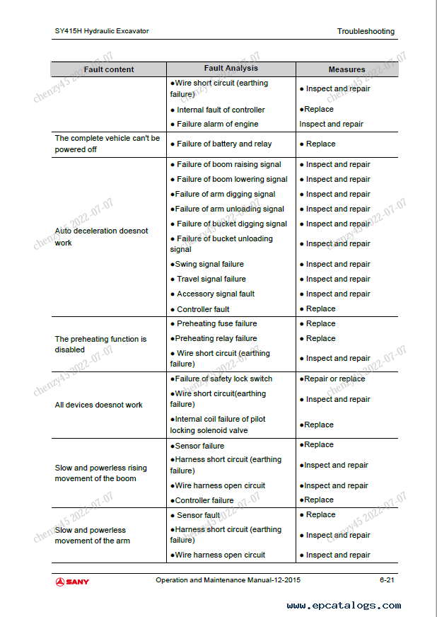 Screenshots for Sany Crawler Hydraulic Excavator SY415H Operation and Maintenance Manual PDF: