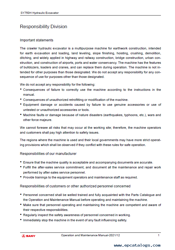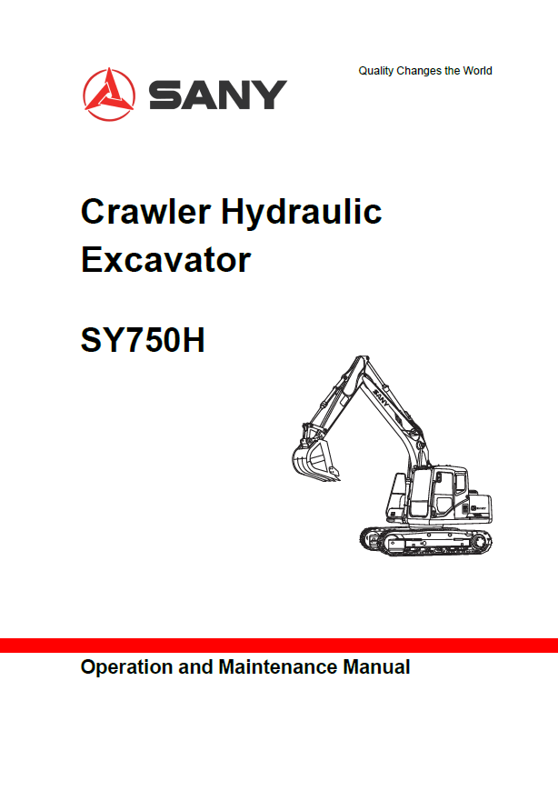 Sany Crawler Hydraulic Excavator SY750H Operation and Maintenance Manual