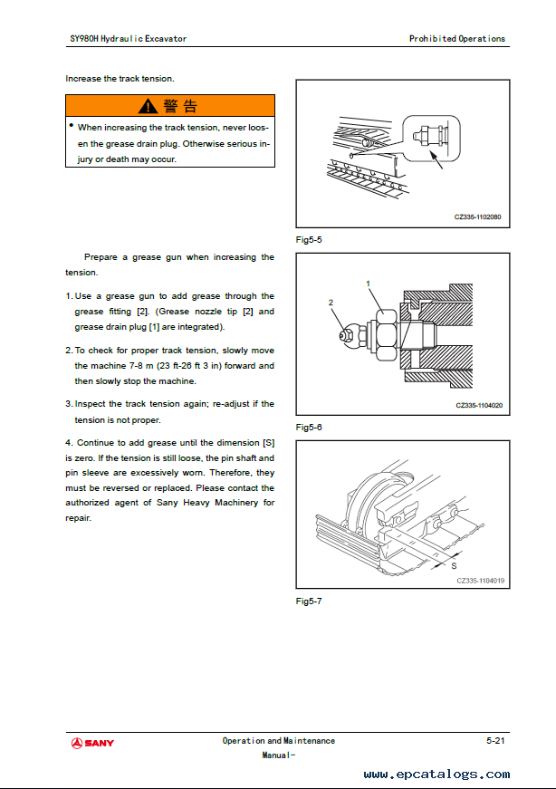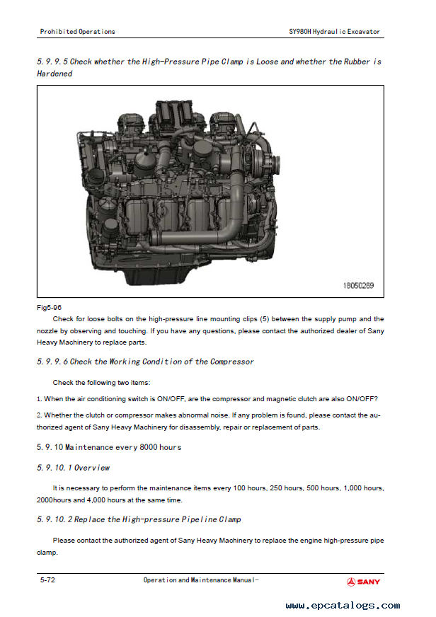 Sany Crawler Hydraulic Excavator SY980H Operation and Maintenance Manual