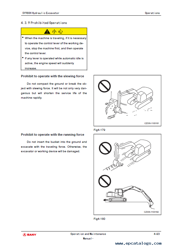 Screenshots for Sany Crawler Hydraulic Excavator SY980H Operation and Maintenance Manual: