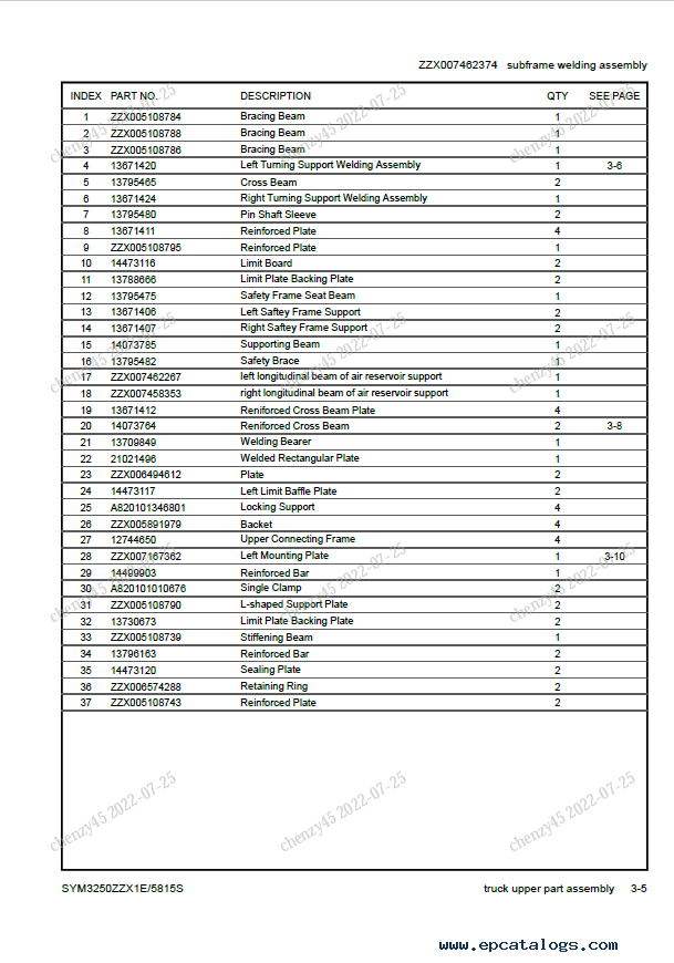 Screenshots for Sany Drum Truck SYM3250ZZX1E/5815S Parts Book PDF: