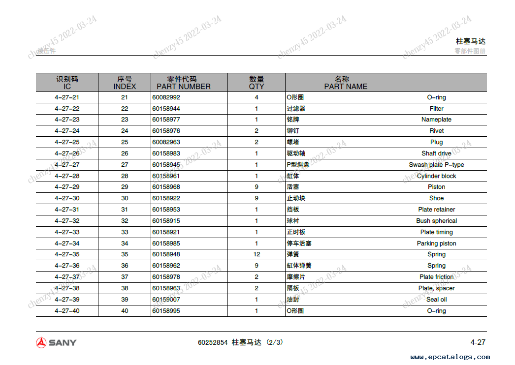 Sany Hydraulic Parts SY245C9M3KHH01 Parts Manual PDF