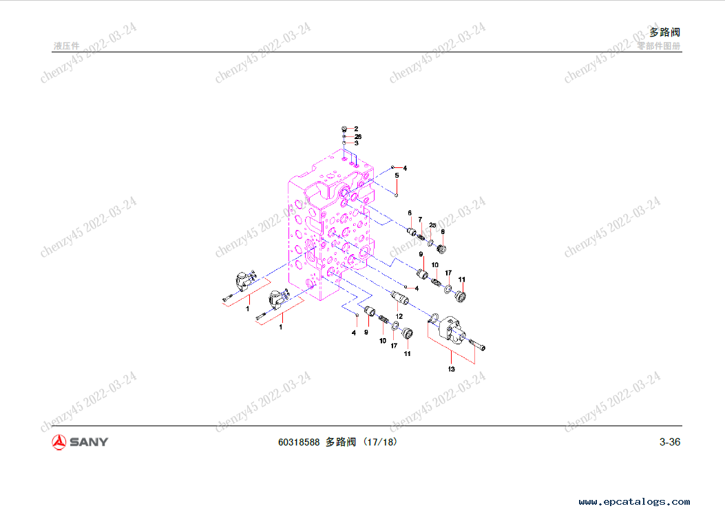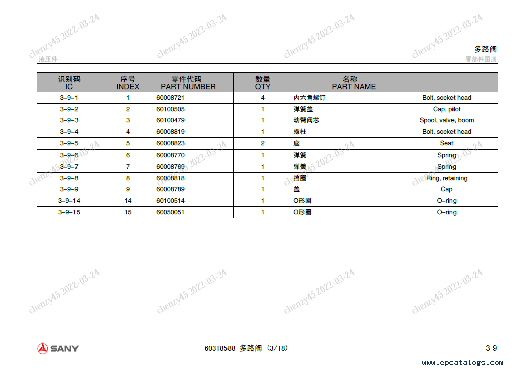 Sany Hydraulic components SY215C9M3KSH01 Parts Catalog PDF