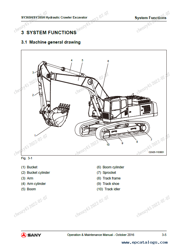 Sany Hydraulic Excavator SY365H, SY365BH, SY375H-10 Operation and Maintenance Manual