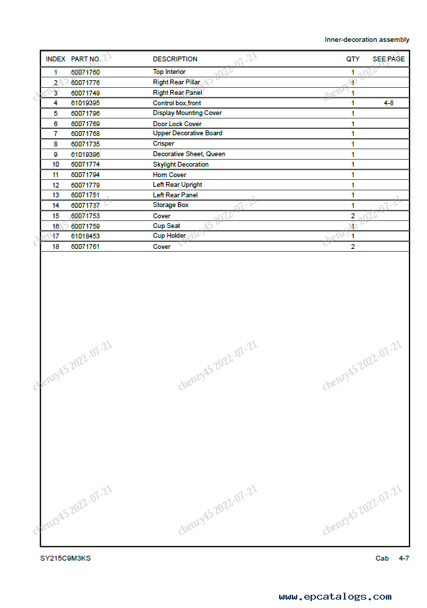 Screenshots for Sany Hydraulic Excavator SY215C9M3KS Parts Manual PDF: