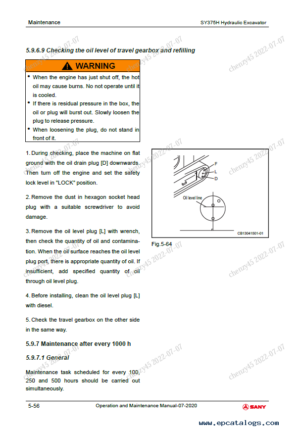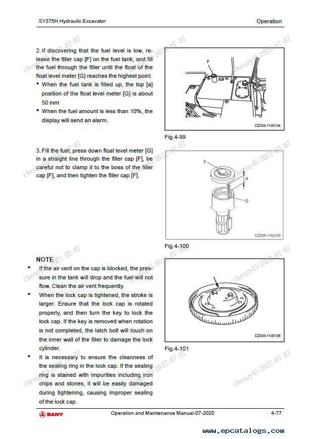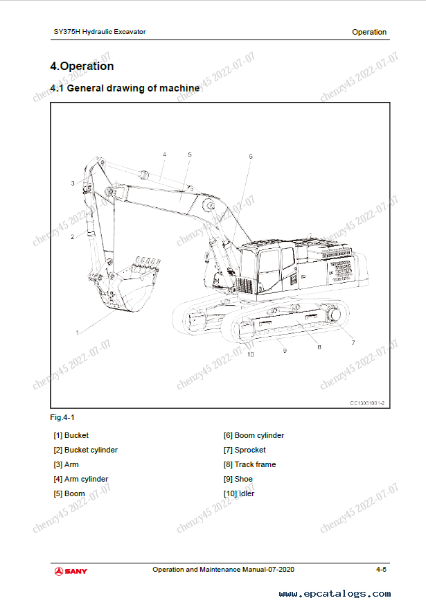 Sany Hydraulic Excavator SY365H, SY365BH, SY375H-10 Operation and Maintenance Manual