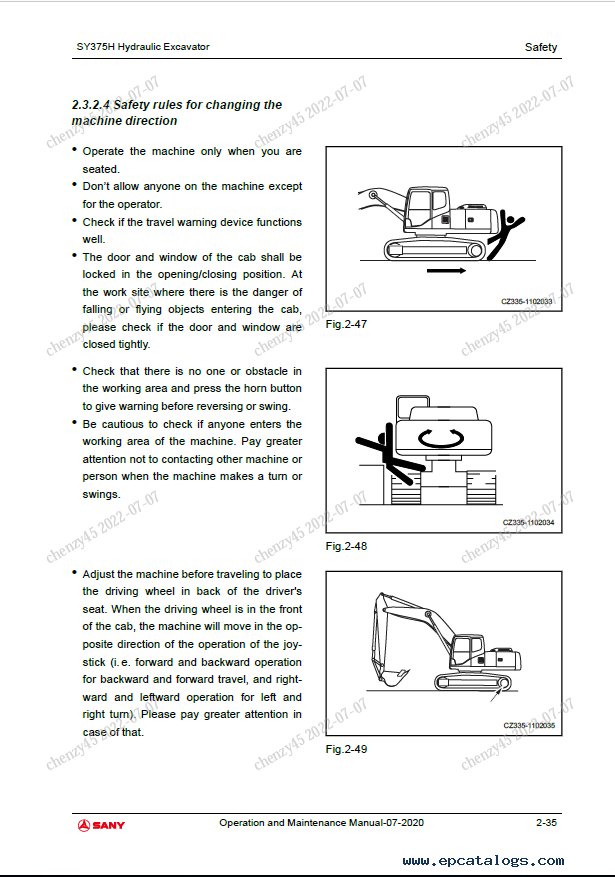Screenshots for Sany Hydraulic Excavator SY365H, SY365BH, SY375H-10 Operation and Maintenance Manual: