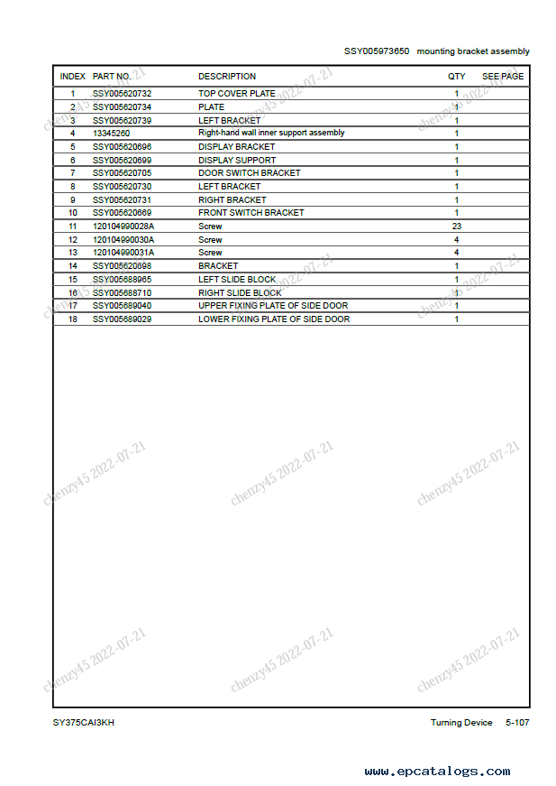 Screenshots for Sany Hydraulic Excavator SY375CAI3KH Parts Manual PDF: